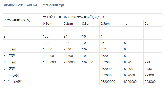 空氣潔凈度等級(air cleanliness class):潔凈空間單位體積空氣中,以大于或等于被考慮粒徑的粒子最大濃度限值進(jìn)行劃分的等級標(biāo)準(zhǔn)。國內(nèi)按空態(tài)、靜態(tài)、動態(tài)對無塵車間進(jìn)行測試、驗收,符合《GB50073-2013 潔凈廠房設(shè)計規(guī)范》、《GB50591-2010 潔凈室施工及驗收規(guī)范》。