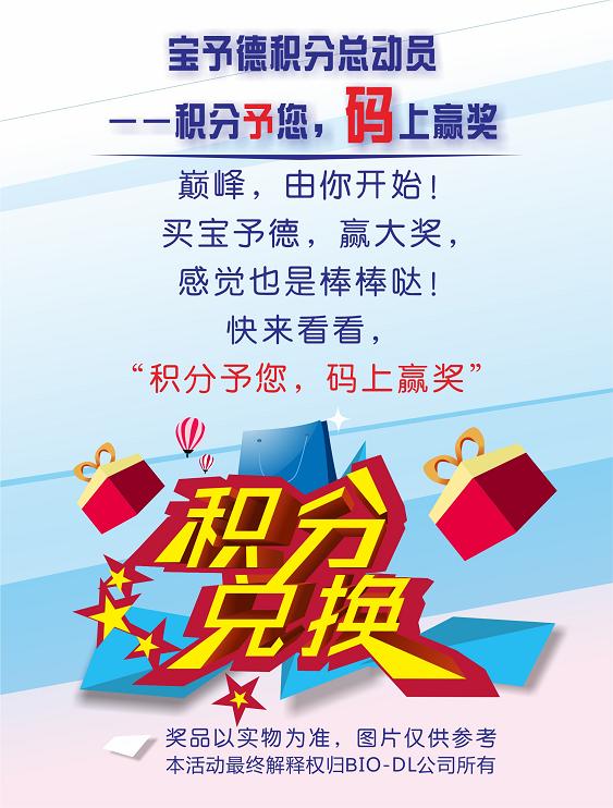凡于2016年關注寶予德官方微信號(BIO-DL_Corporation)注冊成為積分會員,通過參與寶予德不定期的活動均可獲得寶予德海豚積分,海豚積分可以在微信積分兌換區兌換相應精美禮品。
