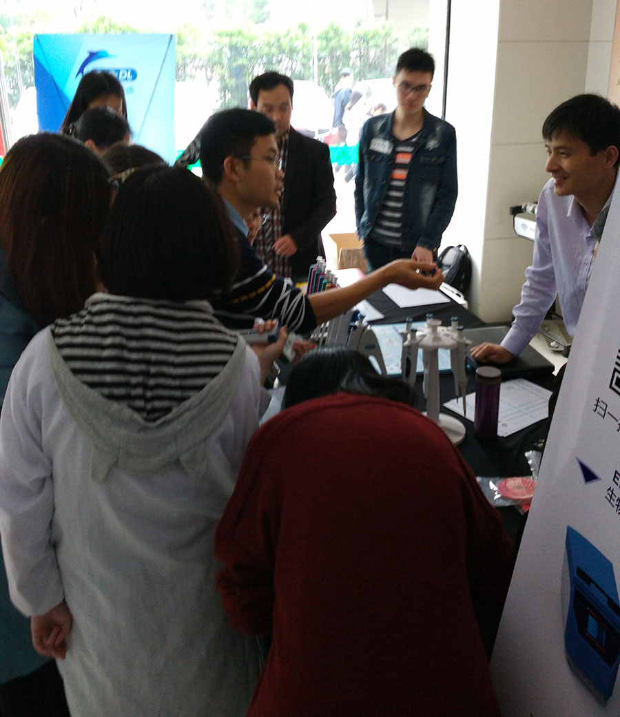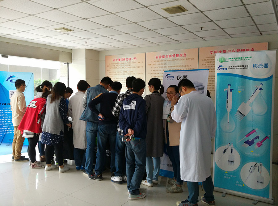 2016年5月9日-5月12日,寶予德(中國(guó))春季高校儀器巡回展第五站在江蘇三所著名高校如期舉行,BIO-DL寶予德和當(dāng)?shù)卮砩毯献髡钩隽艘埔合盗挟a(chǎn)品和分子生物學(xué)相關(guān)實(shí)驗(yàn)儀器。優(yōu)良的產(chǎn)品,貼心的服務(wù),精美的禮品,吸引了許多科研工作者前來(lái)問(wèn)詢(xún)。 在巡展中,BIO-DL寶予德維修工程師現(xiàn)場(chǎng)為用戶(hù)進(jìn)行移液器校準(zhǔn)及維護(hù),技術(shù)專(zhuān)員與老師、同學(xué)們熱情互動(dòng),答疑解難,加強(qiáng)了用戶(hù)對(duì)移液器規(guī)范操作和日常維護(hù)的了解。 下面是活動(dòng)回顧: