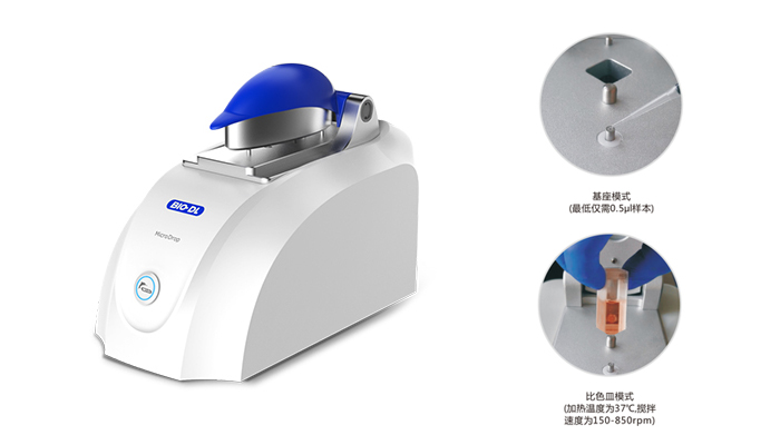MicroDrop超微量分光光度計,既可檢測微量樣品(0.5~2μl),也可用比色皿檢測,配備10.1英寸高清平板操作平板,WiFi連接,告別雜亂數據線,騰出更多實驗空間。